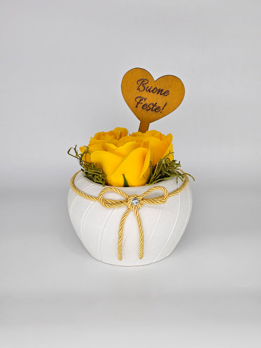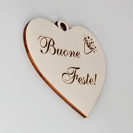 10x - Puntale BASSO "Buone Feste!" giallo ocra